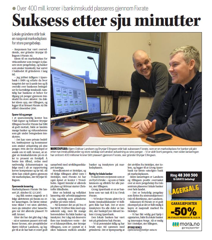 "Vi bruker Fixrate aktivt for å hente innskuddskunder vi tidligere ikke har hatt. Det er store innskytere fra alle deler av landet" sier banksjef i Grong Sparebank, Jon Håvard Solum.